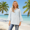 Elevate your wardrobe with this refined long sleeve shirt, featuring subtle sequin detailing that catches the light with understated elegance. The rich blue hue offers versatility for both professional and casual settings, while the sequin accents add a touch of glamour without overwhelming the design. Perfect for layering or wearing solo, this piece transitions seamlessly from day to evening, making it an essential addition to any sophisticated wardrobe.