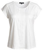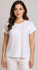 Crafted from a soft blend of 95% cotton and 5% spandex, this round neck tee from Cafe Latte offers a gentle stretch that moves with you throughout the day. The delicate lace and mesh trims add a touch of elegance, enhancing its style while maintaining comfort.