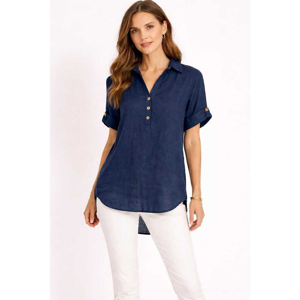 A timeless wardrobe essential, this navy button front shirt features a classic collar and clean lines for effortless versatility. The structured design transitions seamlessly from casual weekends to professional settings, while the rich navy tone complements any complexion. Crafted for comfort and durability, it pairs beautifully with tailored trousers, denim, or layered under knitwear for year-round styling possibilities.