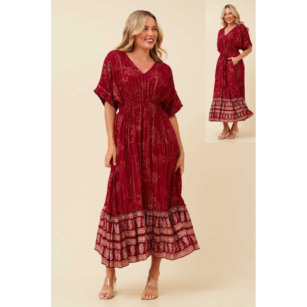 Step into the day with confidence in the Boho Dress this season. The dress effortlessly combines trendy foil print with classic elegance, ensuring you look and feel luxurious. Effortlessly pair with heels or sandals and an embellished bucket bag.