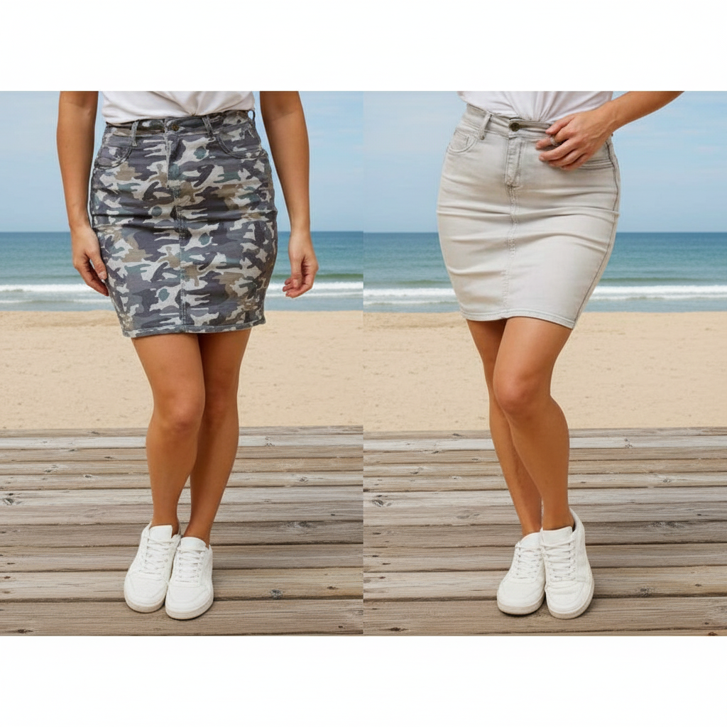 Transform your wardrobe with this versatile reversible skirt, seamlessly transitioning between classic denim and soft beige. Crafted for the modern woman who values both style and practicality, this piece offers two distinct looks in one elegant silhouette. The quality construction ensures durability through countless wears, while the neutral colour palette pairs effortlessly with your existing pieces. Perfect for creating multiple outfits without the extra bulk in your closet.