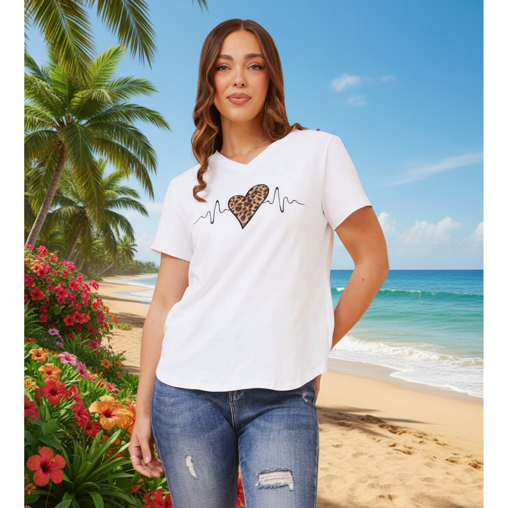 Elevate your everyday wardrobe with this refined cotton tee, featuring a delicate heart print that strikes the perfect balance between understated elegance and contemporary style. Crafted from premium cotton, it offers exceptional softness and breathability for all-day comfort. The timeless white base pairs effortlessly with any ensemble, making it a versatile staple for both casual outings and relaxed layering. Perfect for those who appreciate quality basics with a touch of subtle sophistication.
