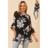Floral Printed Georgette Over-Lay Top - Black