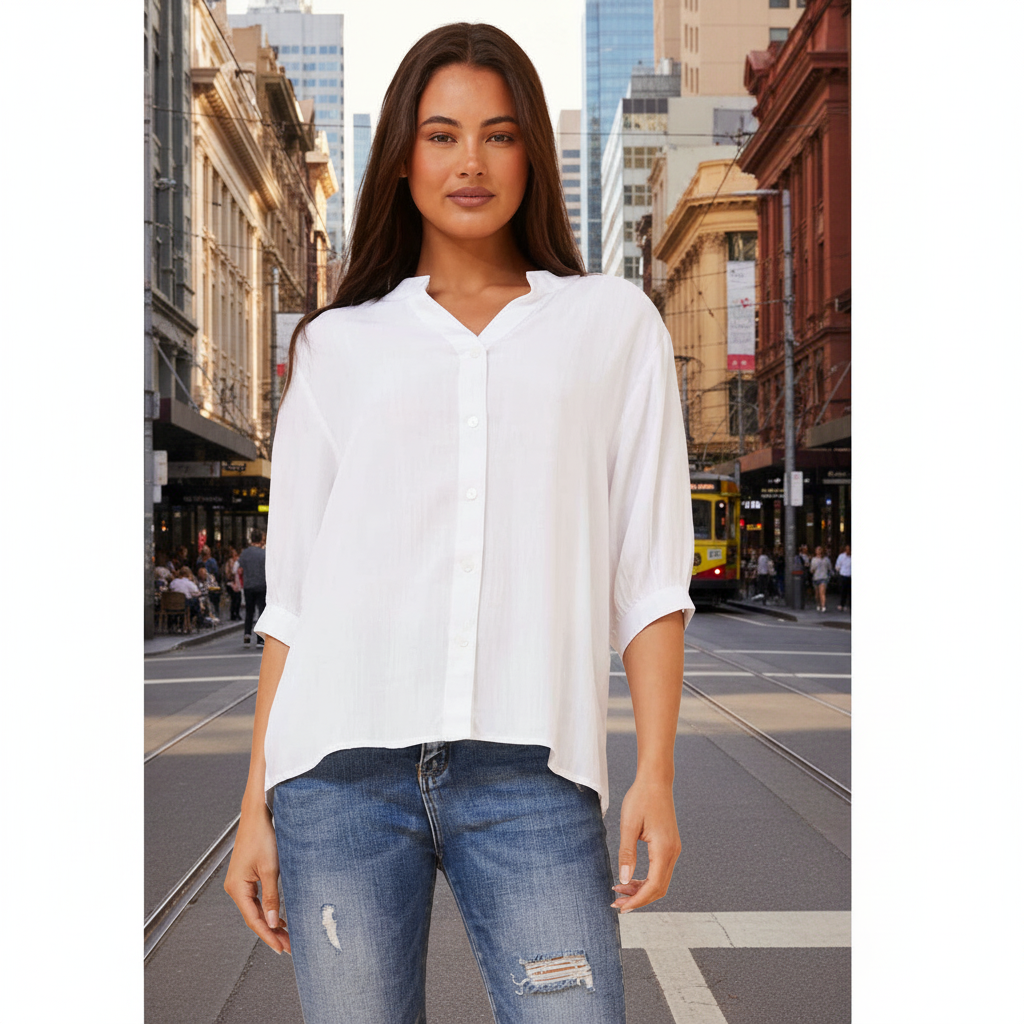 Add a stylish twist to your holiday wardrobe with our shirt. Style it with jeans and sneakers for a casual spring look or match with linen pants and sandals for a vacay vibe!