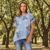 Elevate your wardrobe with this refined printed linen top, where timeless elegance meets contemporary flair. The breathable linen fabric offers effortless comfort for warm weather styling, while delicate sequin detailing adds a subtle shimmer that catches the light beautifully. The sophisticated blue palette works seamlessly with both casual and dressed-up occasions, making it a versatile investment piece. Perfect for layering or wearing solo, this top brings understated luxury to your everyday collection.