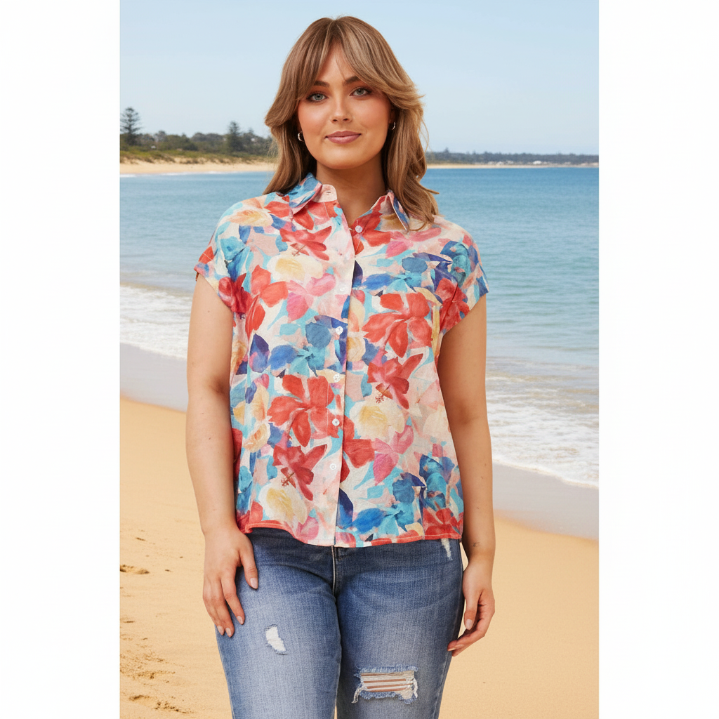 Effortlessly chic and versatile, this cap sleeve button through shirt in soft pink offers timeless appeal for the modern wardrobe. The structured button-front design provides polished sophistication, while the relaxed cap sleeves add contemporary ease. Perfect paired with denim for an understated weekend look or layered under tailored pieces for refined versatility. A wardrobe essential that transitions seamlessly from casual to smart-casual occasions.