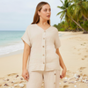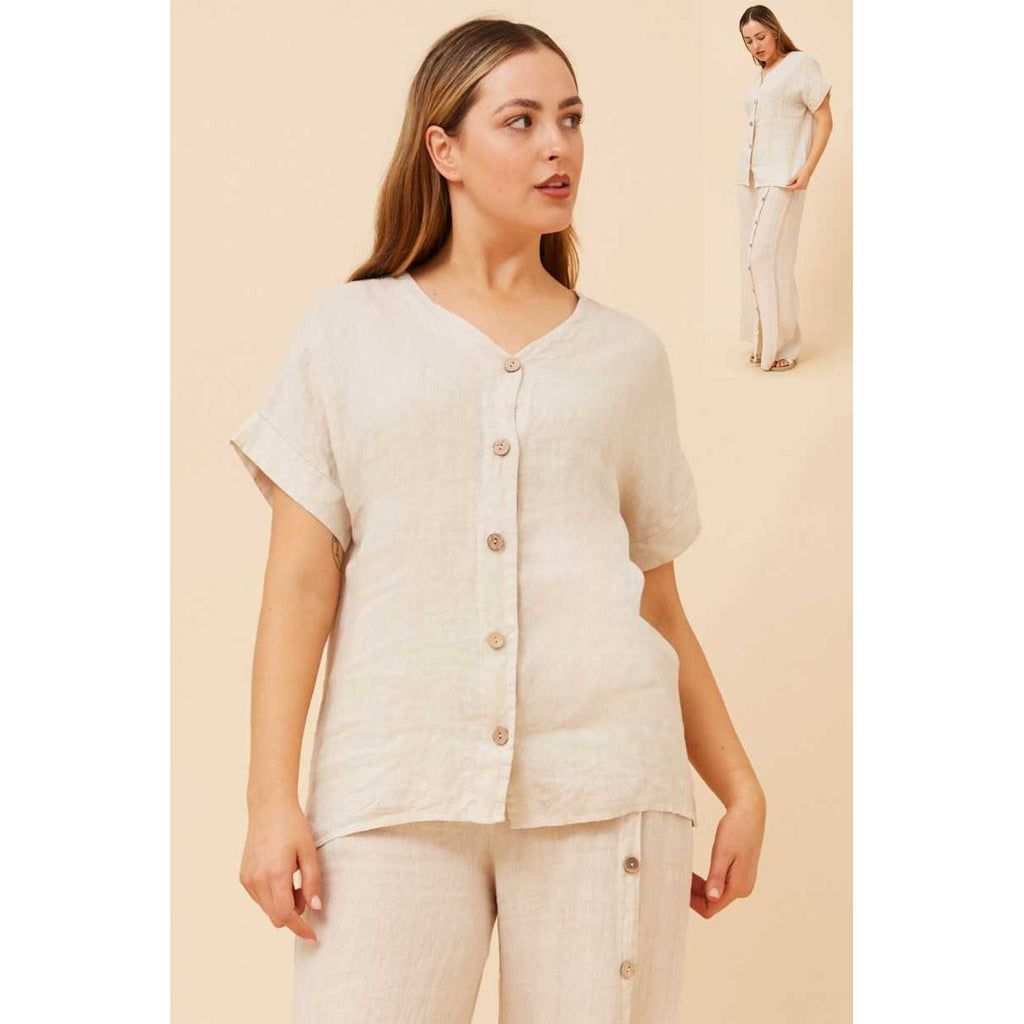 Short Sleeve Button Through Top - Linen