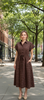 Cafe Latte Dress with collar and drawsting waist - Mocha