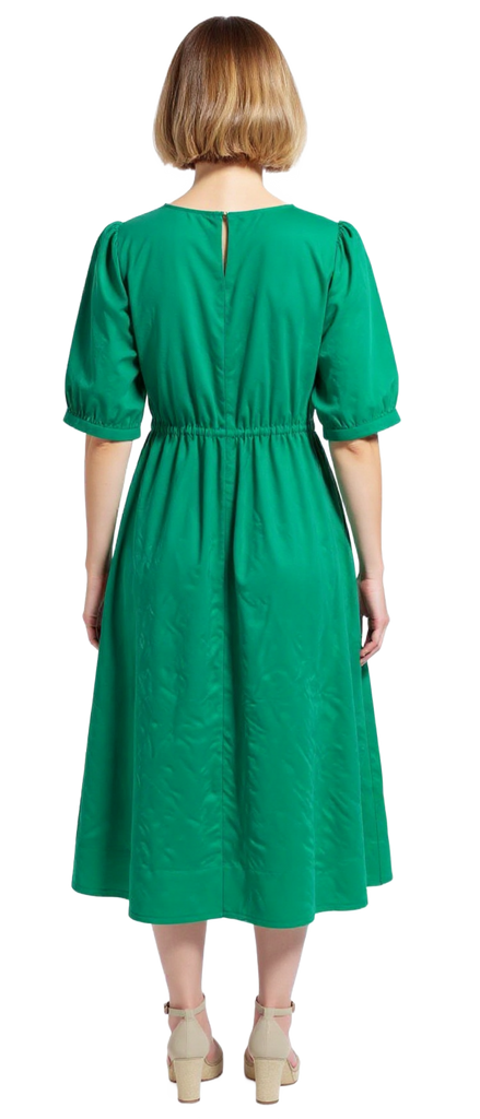 Elevate your everyday wardrobe with this refined café latte dress, featuring a sophisticated self-check textured fabric that adds subtle visual interest. The adjustable drawstring waist creates a flattering silhouette, while the classic v-neck and voluminous puff sleeves deliver timeless elegance. Practical side pockets and finished sleeve cuffs complete this versatile piece, perfect for transitioning seamlessly from day to evening occasions.