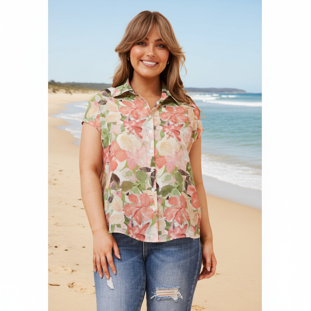 Effortlessly chic and versatile, this cap sleeve button through shirt in soft pink offers timeless appeal for the modern wardrobe. The structured button-front design provides polished sophistication, while the relaxed cap sleeves add contemporary ease. Perfect paired with denim for an understated weekend look or layered under tailored pieces for refined versatility. A wardrobe essential that transitions seamlessly from casual to smart-casual occasions.