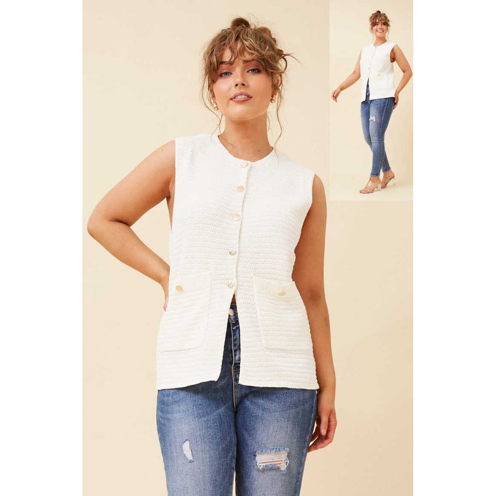 Knit Vest With Button Front - Ivory