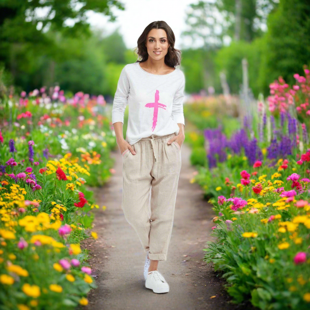The Hot Cross Long Sleeve Top is designed for a stylish, casual look with a touch of sparkle. It's made of lightweight cotton and features a raw edge around the neck. Imported from Italy and backed by Italian Star's renowned quality, the top pairs perfectly with your favourite jeans.