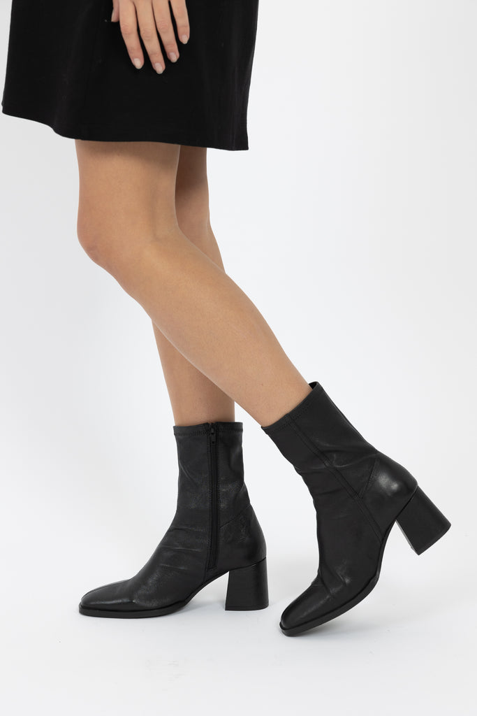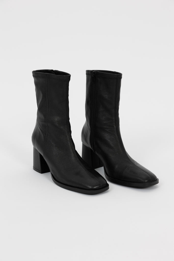 Humidity boots have been designed with comfort and style as a priority. The elasticized stretch leather offers a comfortable fit. This sleek heeled boot will suit a narrow to mid width foot. A comfortable and classy boot that will elevate your look. The padded sole offer excellent comfort. All our boots are designed to be comfortable from the first wear however this style may need to be worn in if your foot is slightly wider. Made from a stretch leather which will give with wear. We suggest spraying them with a leather protectant and polishing in between and (if looked after) they should last for many seasons ahead.