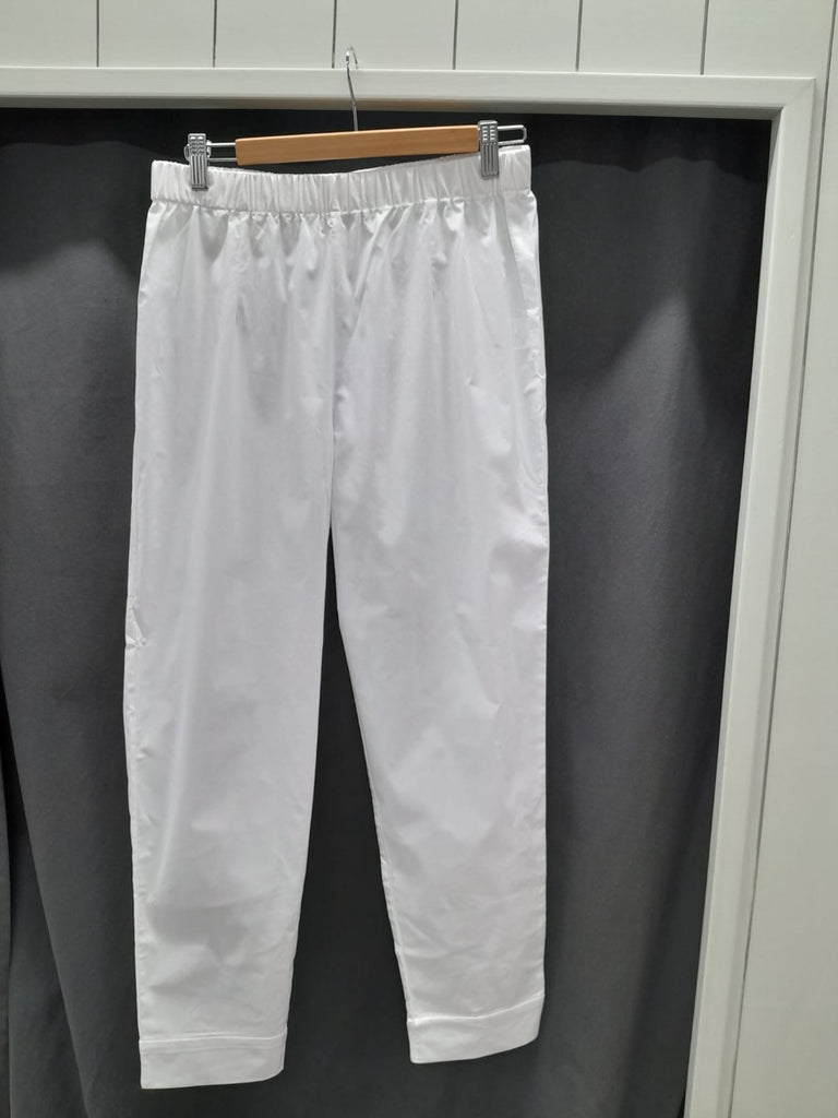 Notre pantalon à enfiler en coton et élasthanne est confectionné dans un tissu doux et extensible pour un confort ultime à chaque fois. Il est doté d'une ceinture élastique pour un ajustement ajustable et d'une couleur blanche classique pour une correspondance facile. Profitez d'une journée sans effort avec ce pantalon incontournable.