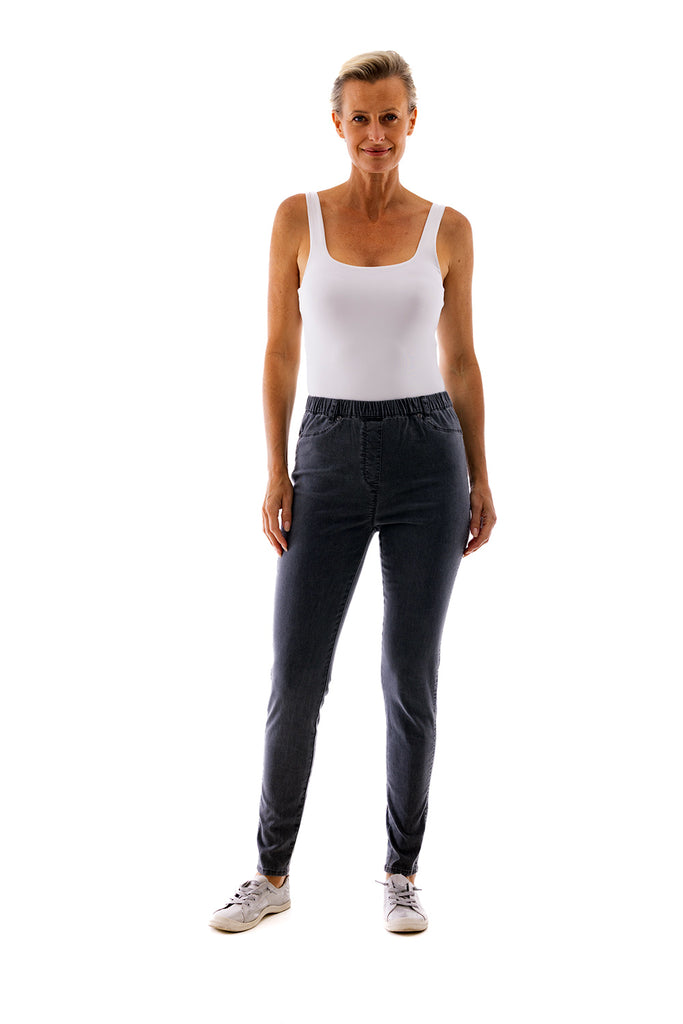 Crafted from a blend of 97% cotton and 3% spandex, these chic ankle-length jeggings feature a luxurious enzyme wash for added softness. Complete with convenient back pockets and belt loops, these jeggings are the epitome of sophisticated style.