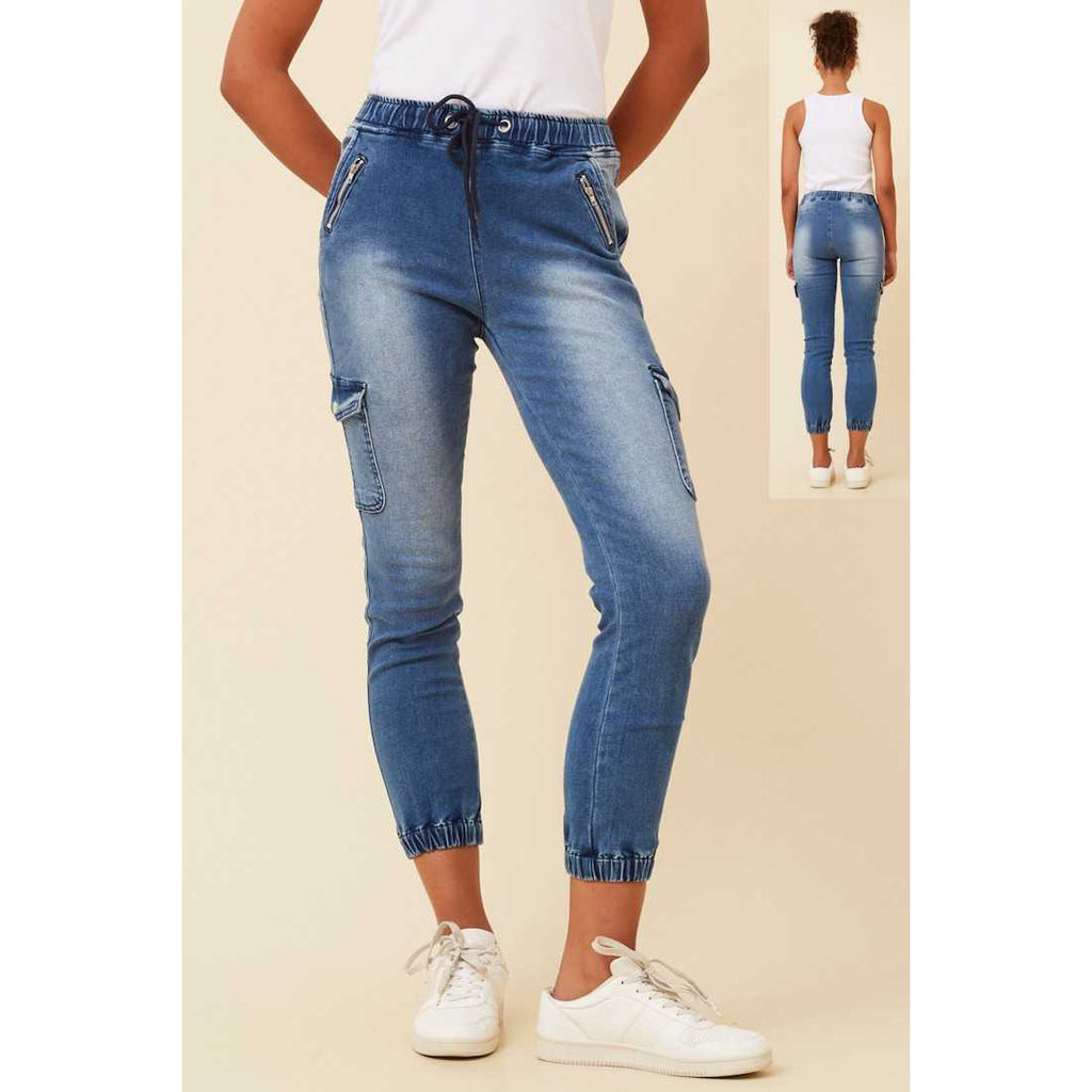 Pull On Joggers With Tie Waist - Denim