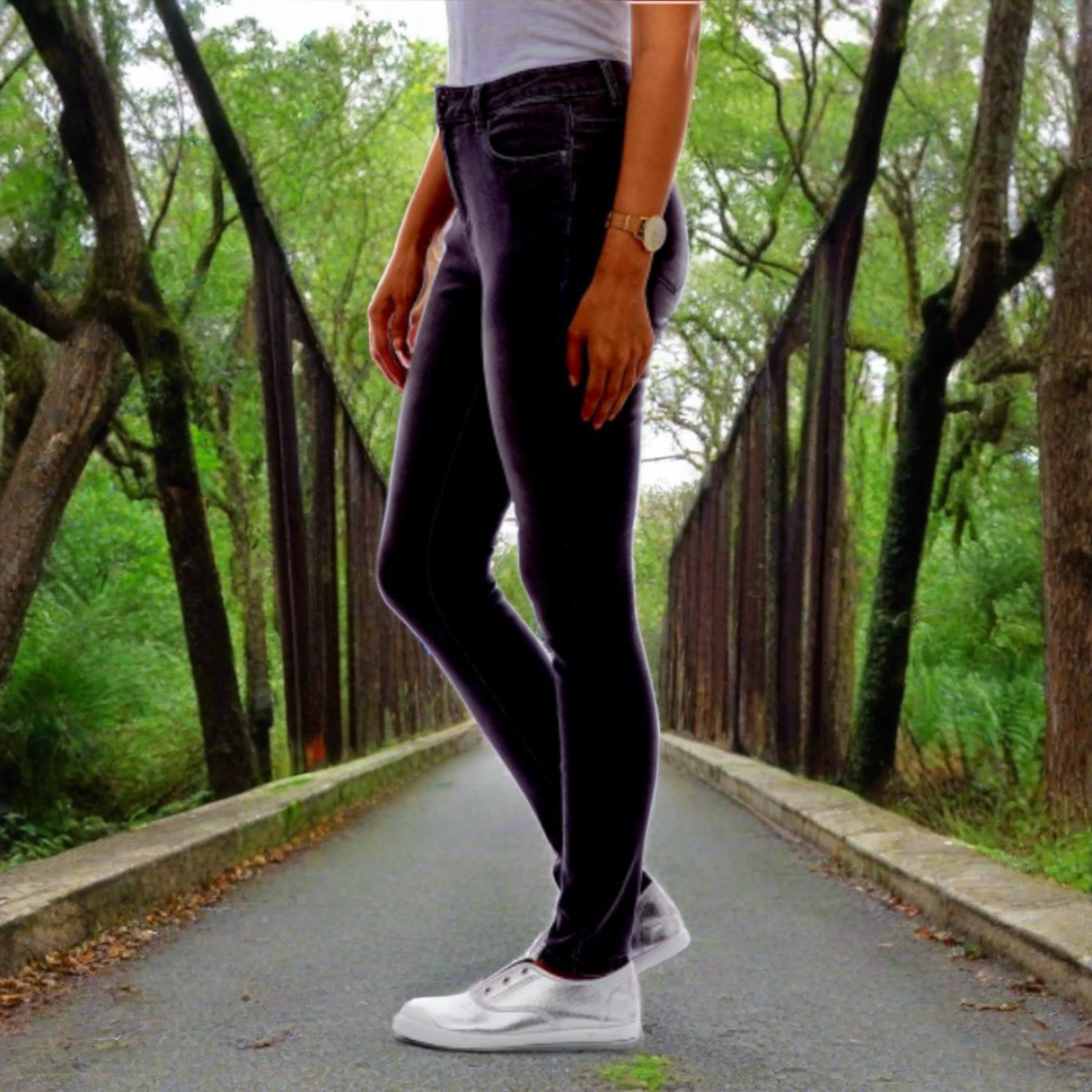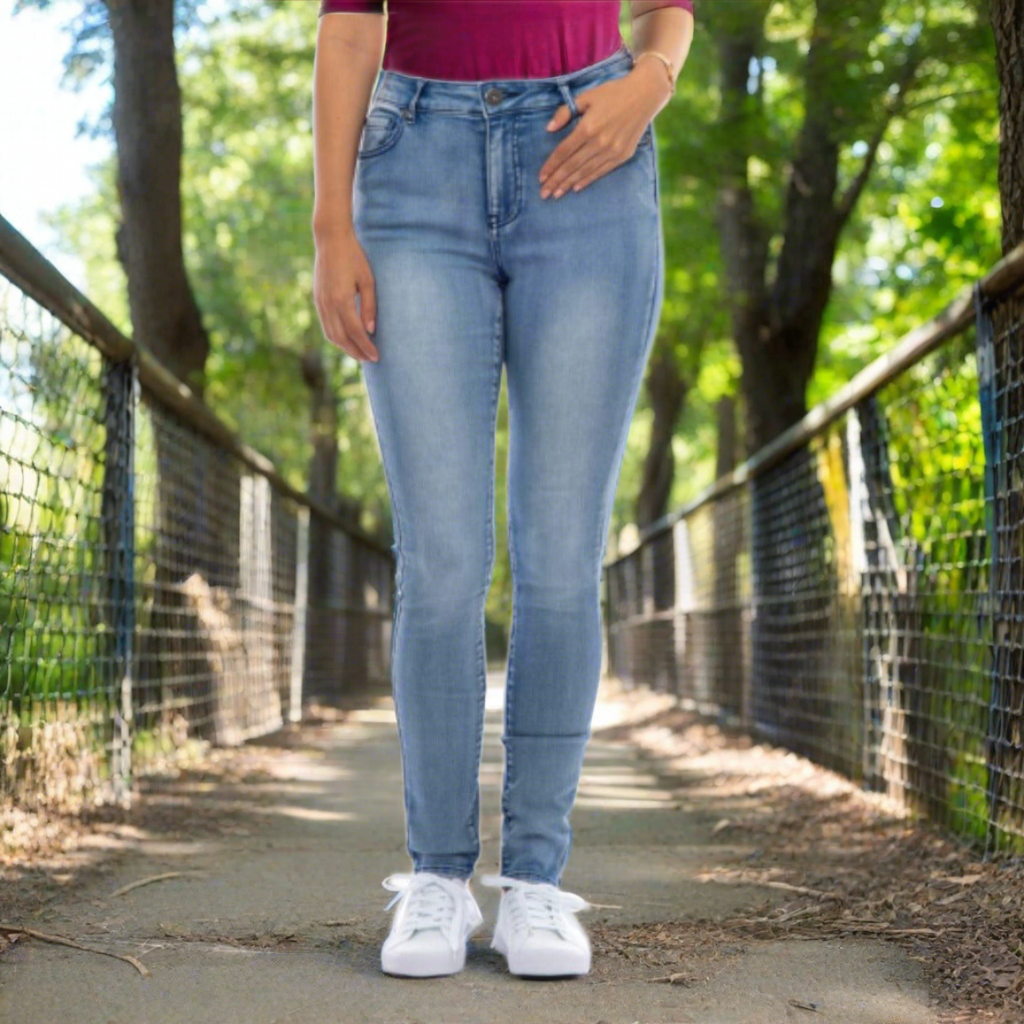 Un mélange de coton, de polyester et d'élasthanne crée un jean extensible à 5 poches avec fermeture éclair sur le devant.