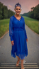 Cette robe est composée d'un mélange de 30 % de soie et de 70 % de viscose, créant une sensation de confort et de luxe. Sa taille froncée élastique ajoute une touche flatteuse et élégante. Disponible dans la couleur vibrante du cobalt, cette robe est un ajout indispensable à toute garde-robe.