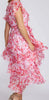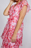 Robe à col volanté - Motif floral blanc/rouge