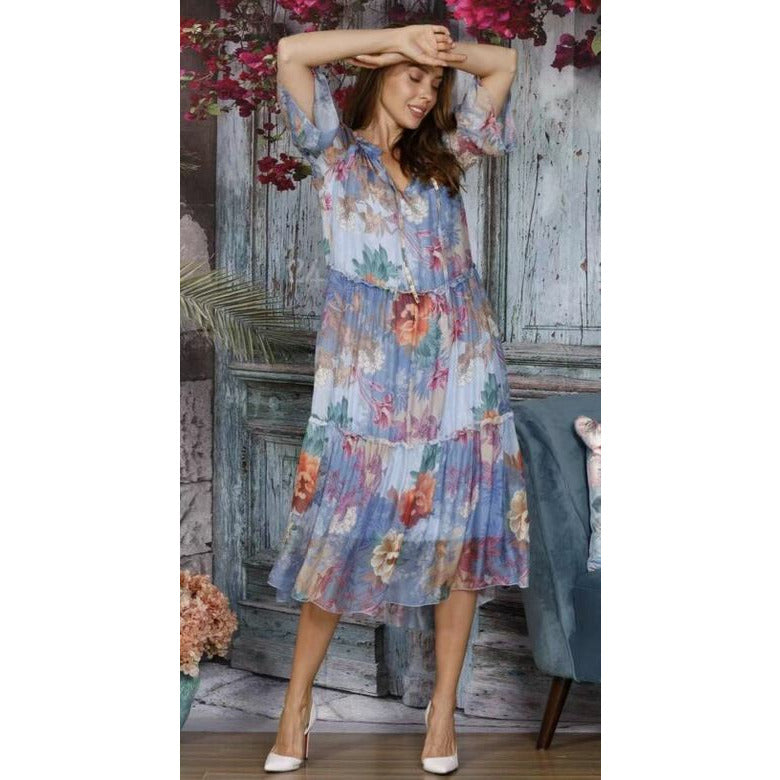 Robe à trois niveaux - Bleu