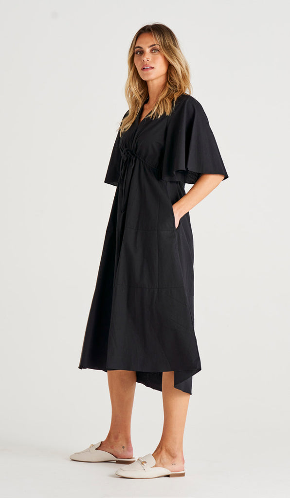 Robe nouée devant Cora à manches 3/4 - Noir