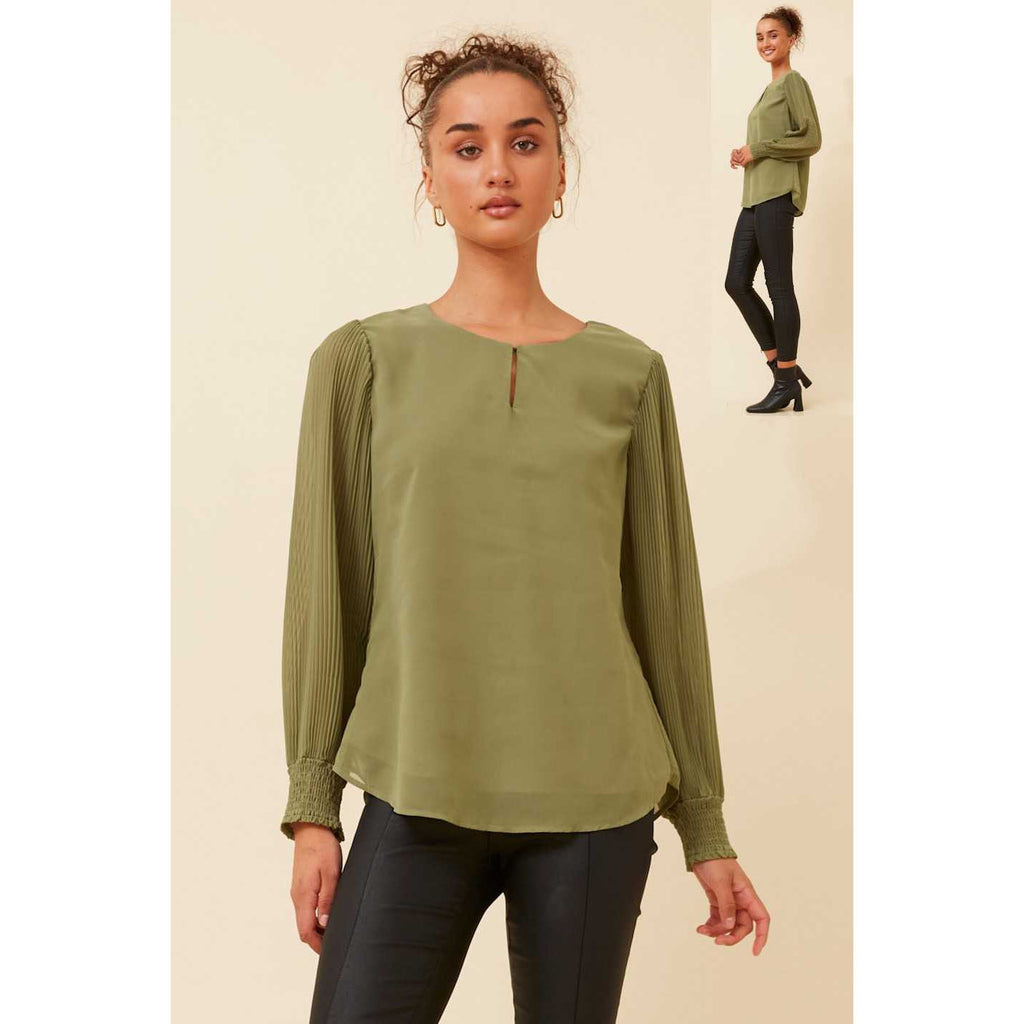 Pleated Sleeve Blouse - Olive