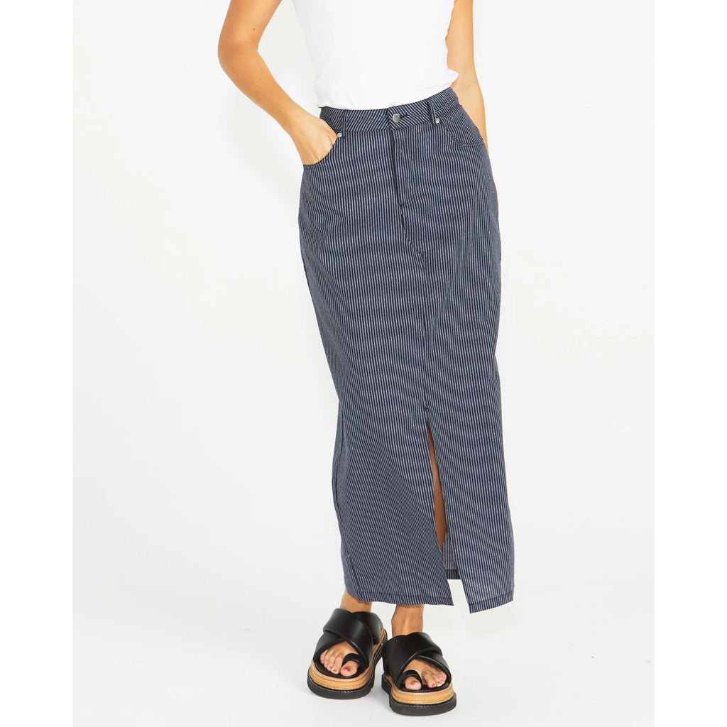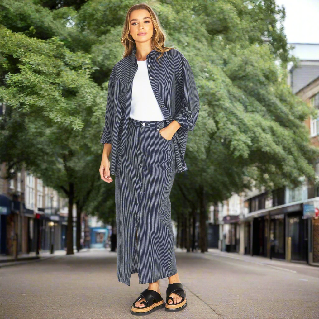 The Liberty Maxi Skirt, with its straight design and front button fastening, offers an effortlessly chic vibe. With four pockets for added functionality, it?s perfect for all-day wear. Pair it with a tucked-in blouse or tee for a polished look.